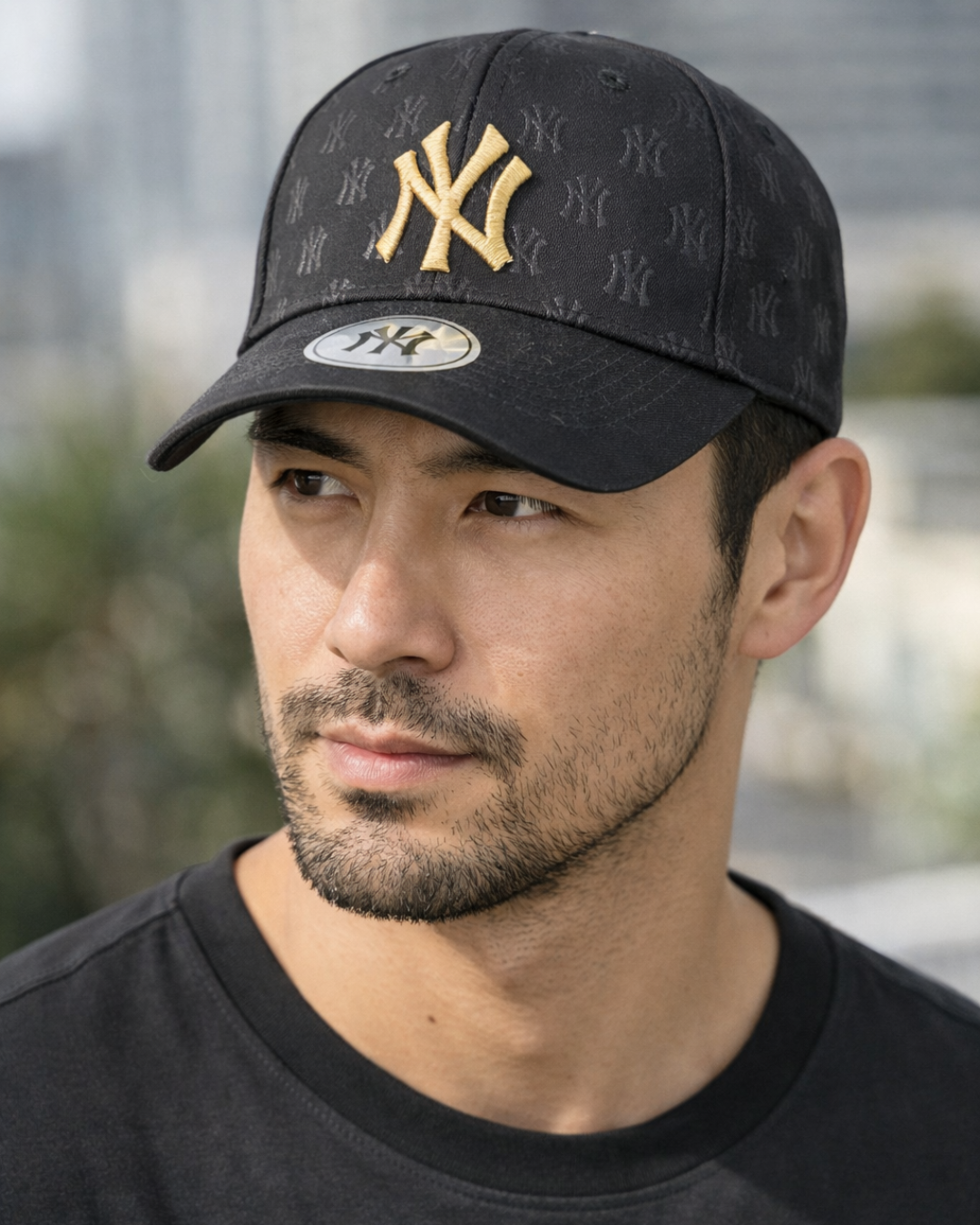 Upgrade your everyday look with this black unisex fit cap featuring a big gold NY-style monogram design. Designed for casual and streetwear use, this cap combines a clean silhouette with subtle all-over pattern detailing and a gold embroidered front logo for a premium-inspired finish.