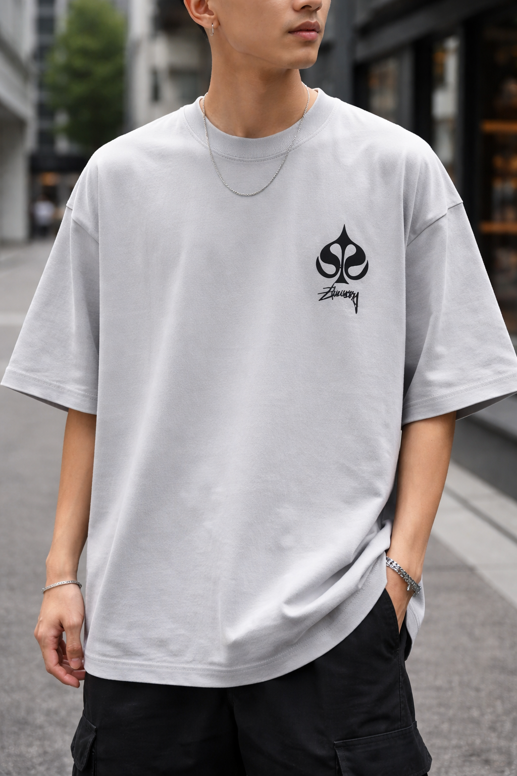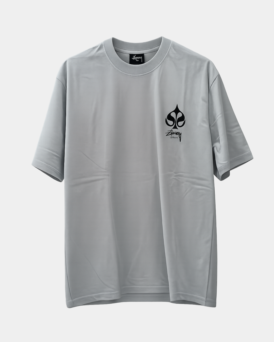 Upgrade your everyday streetwear with this oversized grey T-shirt, designed for a relaxed and effortless fit. Featuring a bold black spade logo with signature detailing on the chest, this piece delivers a clean yet standout look.