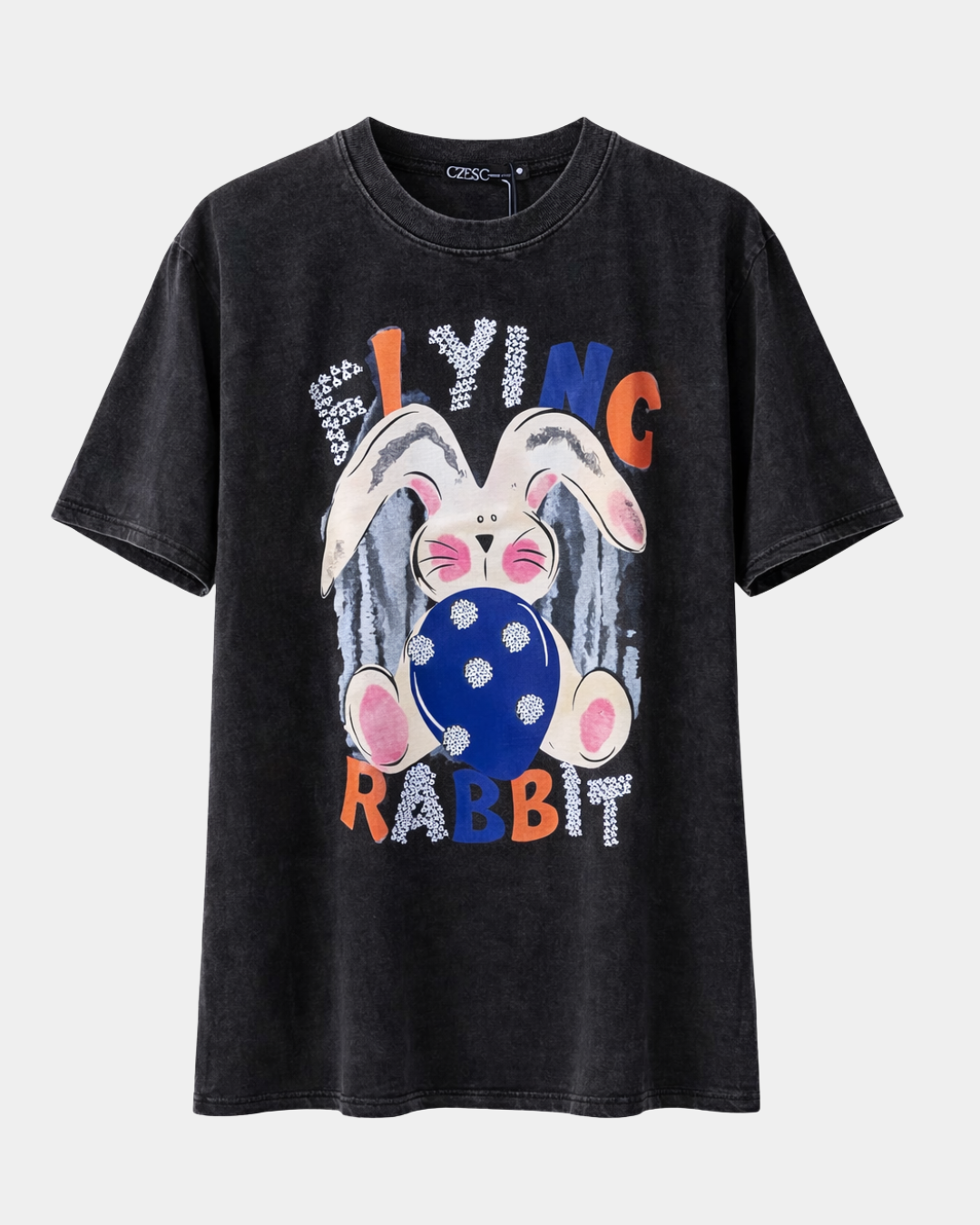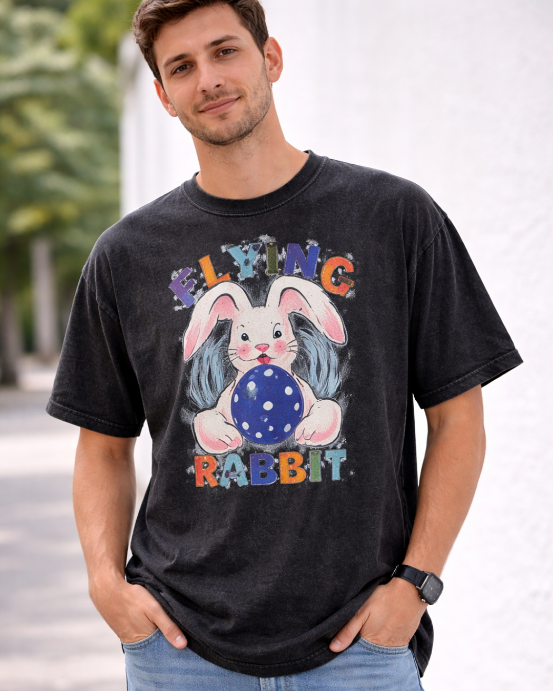 Make a statement with our Flying Rabbit Vintage Graphic Tee, a playful yet edgy piece designed for effortless everyday style. Featuring a bold illustrated rabbit graphic with vibrant color accents, this tee brings a fun streetwear twist to a classic silhouette.