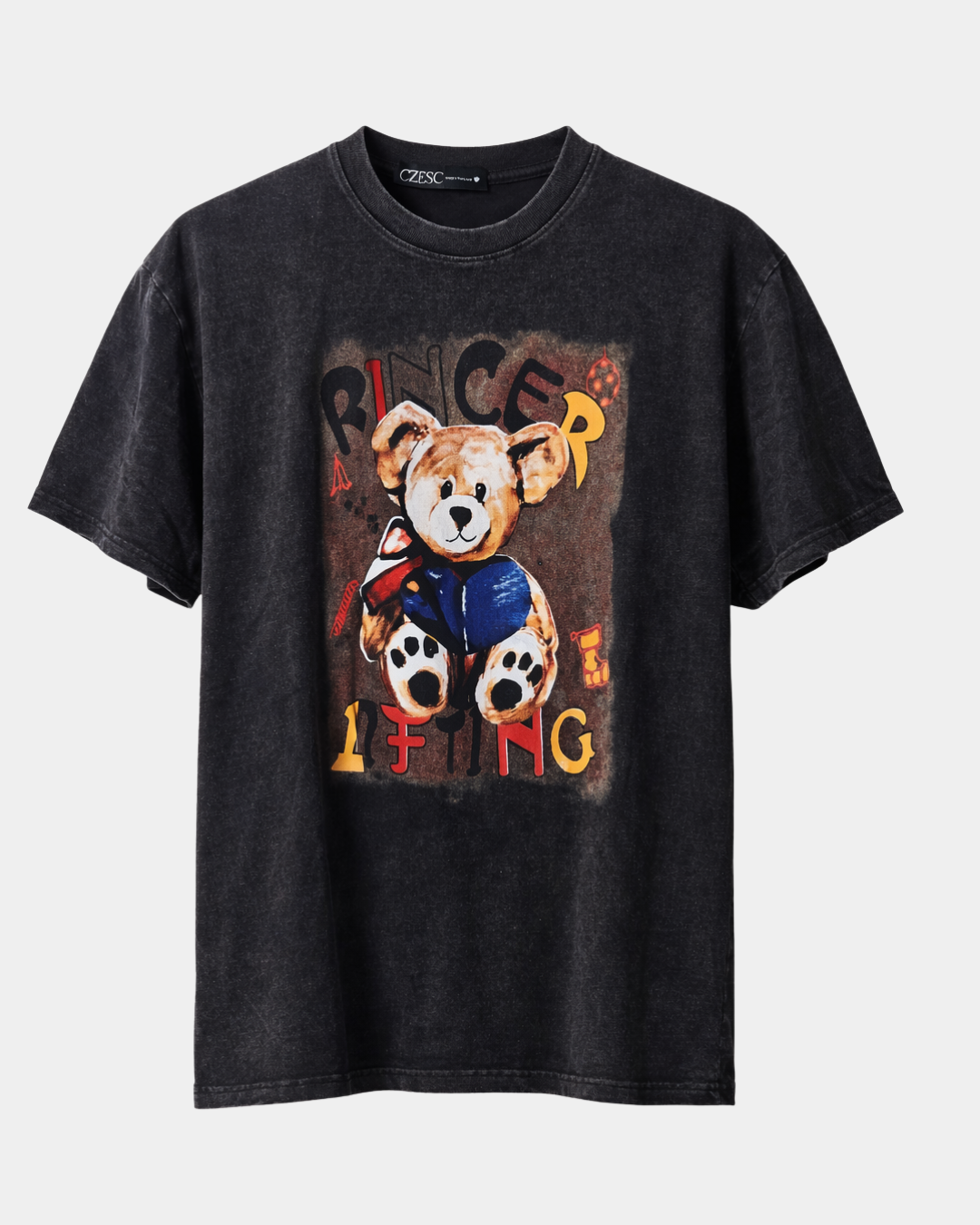 A statement piece with a nostalgic edge. This vintage-washed black T-shirt features a bold teddy bear graphic with distressed detailing for a worn-in, streetwear look. Designed for comfort and everyday wear, it offers a relaxed fit and soft fabric that pairs effortlessly with jeans or casual layers. Perfect for those who like expressive graphics with a timeless, laid-back vibe.